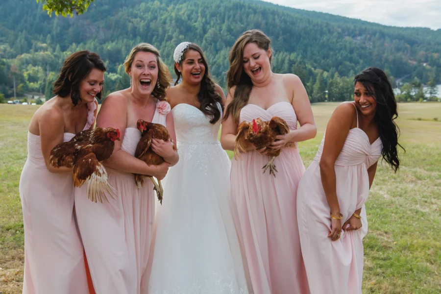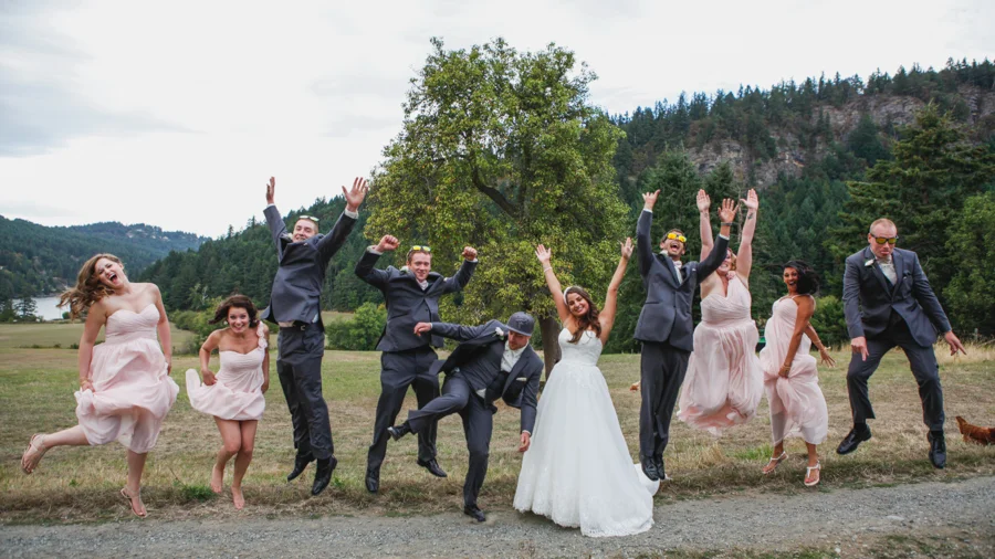 -A massive wedding party with welcoming energy and the spirit to do just about anything for a good photo. Feeling like you've known them forever.